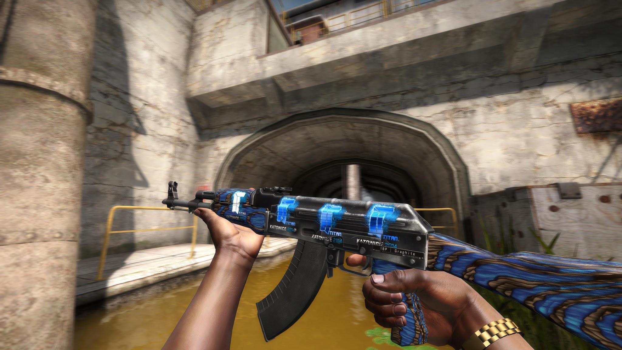The barrel and every wooden part have a blue texture, which contrasts nicely with the rest of the black AK. The color is pleasant, and since there are so many blue stickers (signature and team) that you can add through various events, the skin really comes to life. In field-tested conditions, it may cost just $4.64, which makes it perfect for players on a budget.